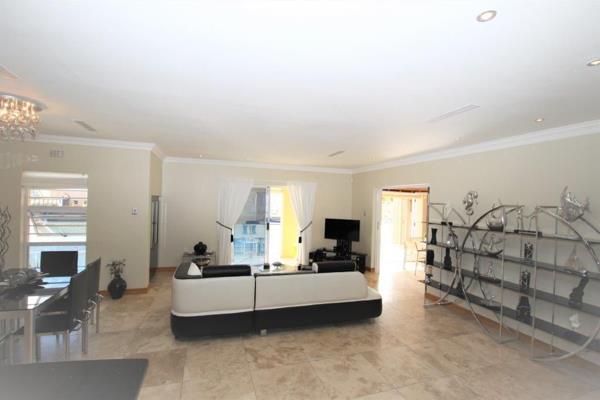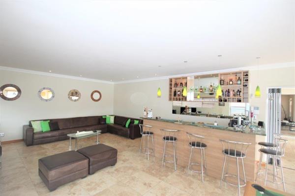 A modern and contemporary kitchen, with granite counter tops, flow effortlessly to the living areas leading onto a patio and terrace extending to the sparkling plunge pool where one can enjoy the stunning views. The open-plan living are consist of dining, kitchen/family room and expansive entertainment areas that include a custom-built bar, offering endless recreational possibilities. The natural element of this home has been spectacularly achieved with floors of raw travertine.