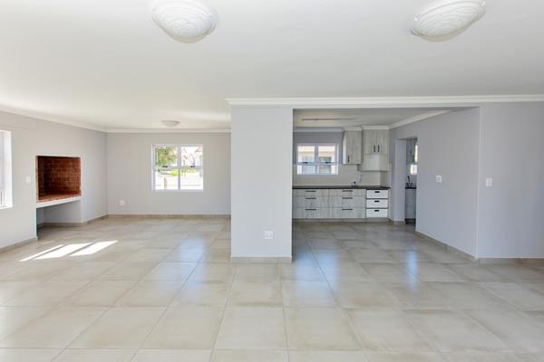 This home is split over two levels with 3 spacious bedrooms and 2 bathrooms on the first level. Downstairs the house welcomes you, with an open plan kitchen, Scullery, with ample cupboards, a build-in braai to enjoy with family and friends and a conveniently positioned guest toilet downstairs.