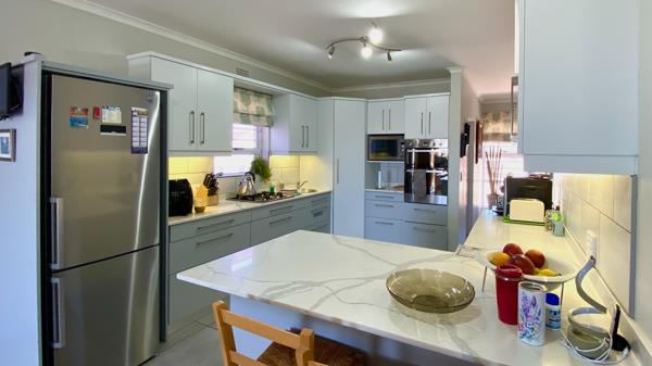 This 3-bedroom family home combines modern amenities with inviting living spaces. The upper level features an open plan Living room, Dining room and modern Kitchen, with spectacular view over the water. The master bedroom, with access to the Balcony, features a luxurious en-suite bathroom, creating a peaceful retreat. Also upstairs is a spacious Study, a guest Bathroom, Laundry and a built-in braai on the Balcony.