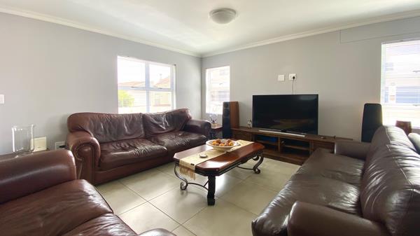 Upon entering this charming home, you enter the downstairs area, bathed in natural light, featuring a comfortable lounge with an indoor braai, a dedicated dining area, and a well-equipped kitchen boasting granite countertops and ample storage.