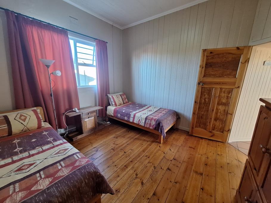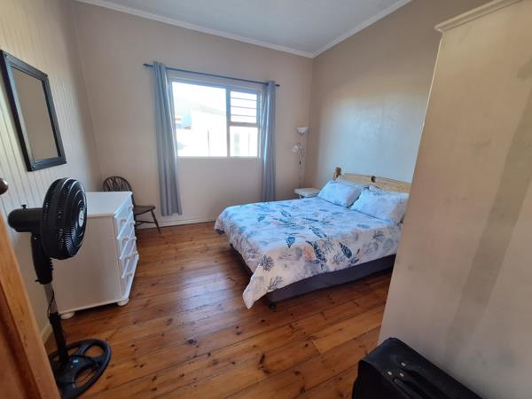 3 Bedrooms. Two with beautifully refurbished Oregon pine floors, third bedroom tiledKitchen and Lounge. Tiled floors, ceiling fan in lounge, built-in braai in kitchen, blind, fitted countertops, and sliding door leading to patioLounge includes a well-lit corner, ideal for a study nook or extra sleeping areaBathroom. Neatly tiled with shower, toilet, and basinQuality Finishes. All inner doors made of solid Oregon pineWindows and Doors. Full aluminum frames throughout for easy maintenance Outdoor and Utilities: