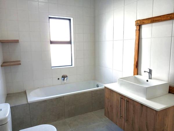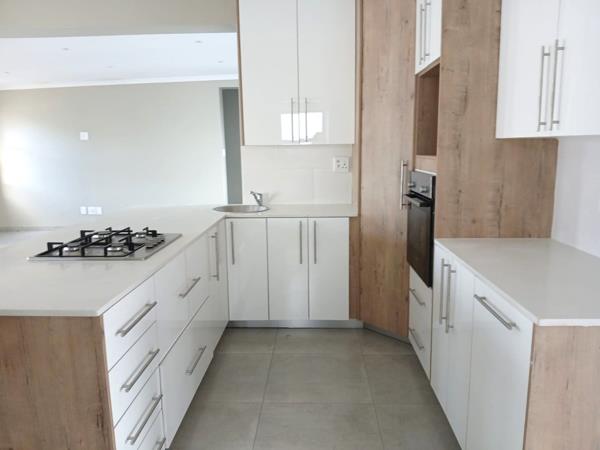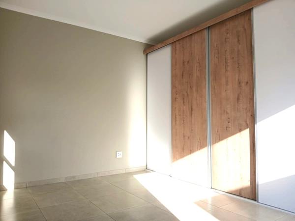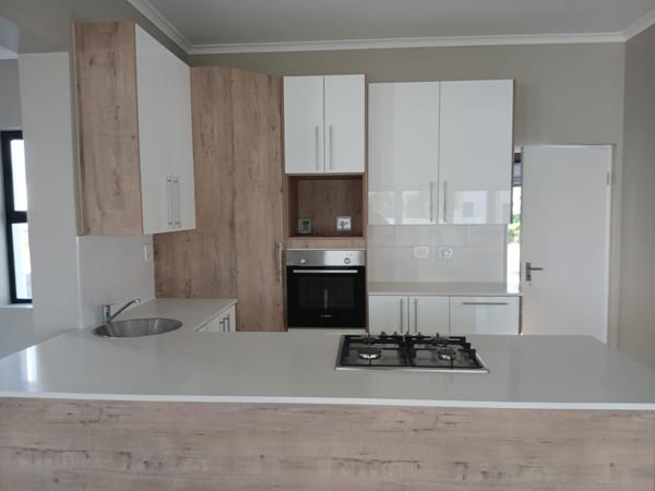 The open-plan kitchen and lounge create a welcoming heart of the home, flowing out onto a covered patio with a built-in braaiperfect for family get-togethers or quiet evenings outdoors. A compact scullery adds practicality, keeping the kitchen neat and organized.