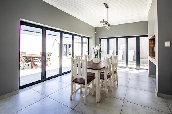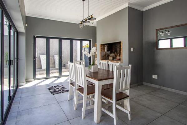 The well-designed kitchen overlooks the braai room and lounge, allowing you to socialize with guests while preparing meals. The entire home exudes a light and carefree ambiance, bathed in natural light, yet retains a cozy and inviting feel. The property is modern, meticulously maintained, and ready for you to move in.
