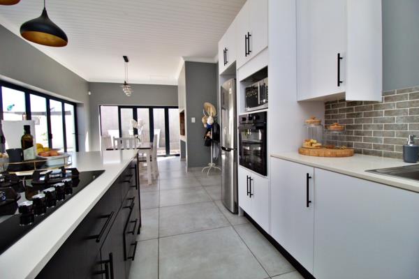 Discover this stunning 3-bedroom home nestled in the sought-after Atlantic Sands gated community in Laaiplek, Cape West Coast. Offering 247 guarded access, this exceptional property is designed for modern coastal living with a seamless indoor-outdoor flow.