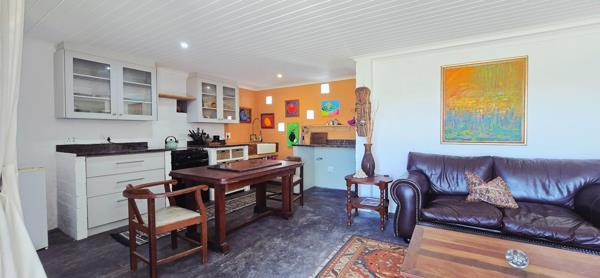 Step inside to an inviting open-plan kitchen and living area, complete with a built-in braaiperfect for cosy indoor entertaining. Stacker doors open onto a lovely patio where you can take in the breathtaking views of the well-maintained garden and with distant river views.