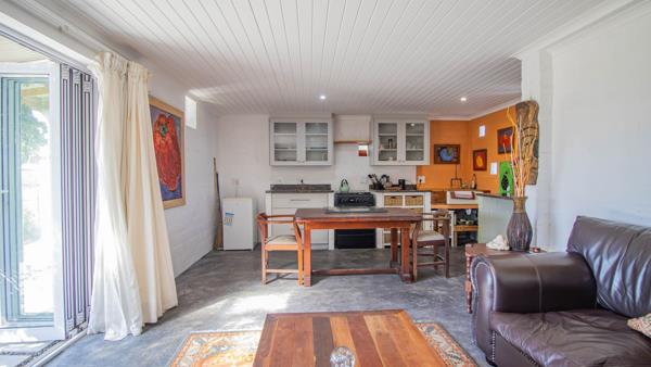 The open-plan kitchen, living, and dining area flows effortlessly to the garden through wide stacker doors, anchored by an indoor fireplacebraaiperfect for cosy West Coast evenings or lively gatherings.