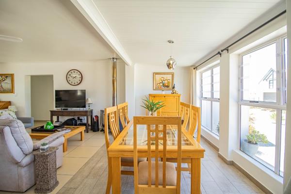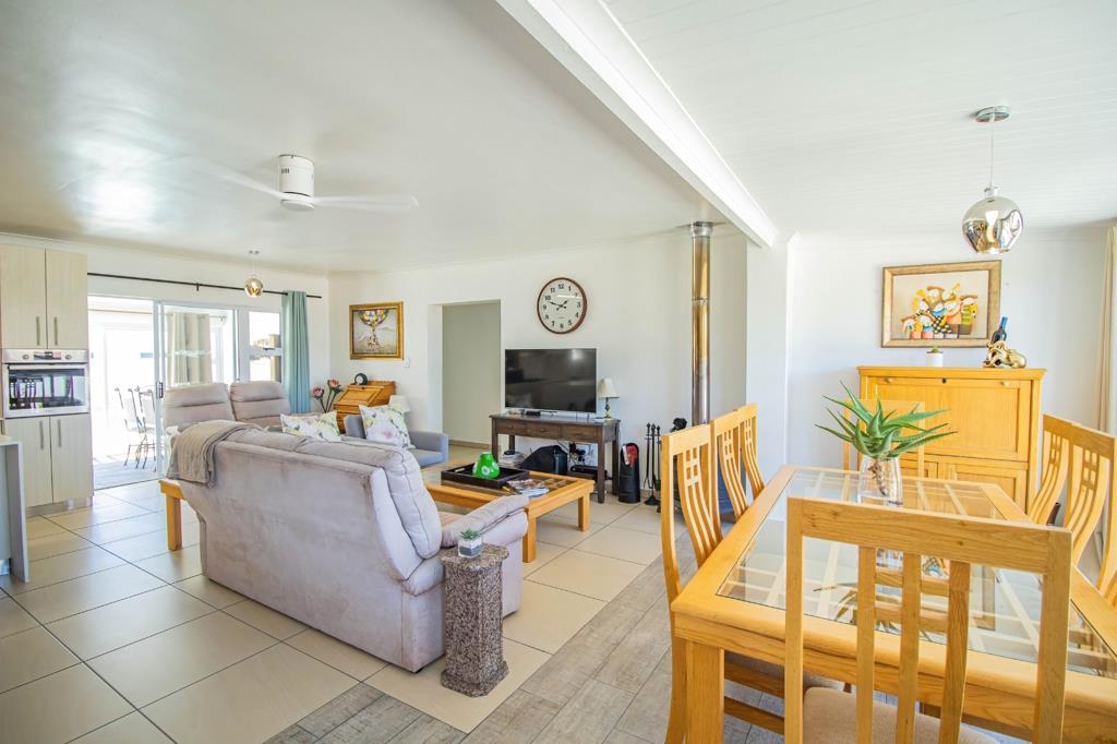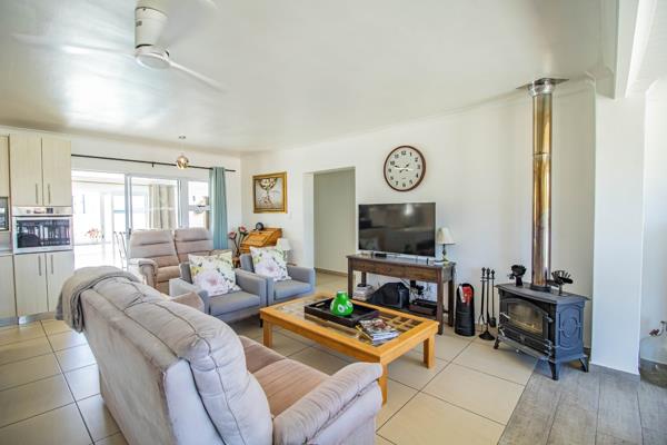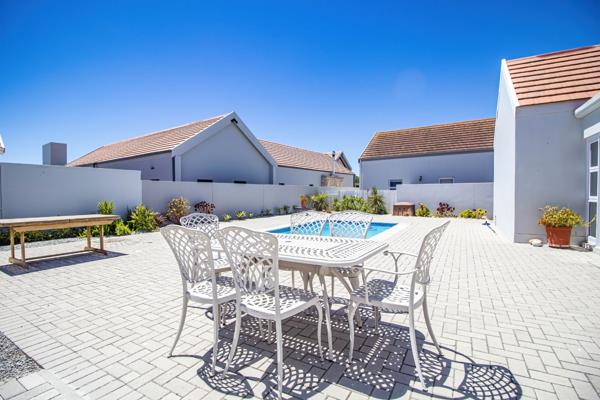 The main living area has an open-plan look with a well placed wood burning fireplace for the cool winter evenings while the kitchen leads into a scullery and separate pantry for all those extras. The lounge and dining area flows into an enclosed braai room which opens out onto the outside entertainment area with a focal sparkling swimming pool for those warm West Coast days.