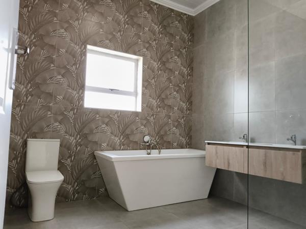 The modern kitchen is both elegant and practical, featuring granite countertops, a built-in oven, hob, and extractor, and is complemented by a separate scullery with pantry cupboards and laundry facilitiesideal for effortless everyday living.