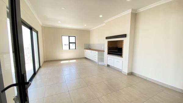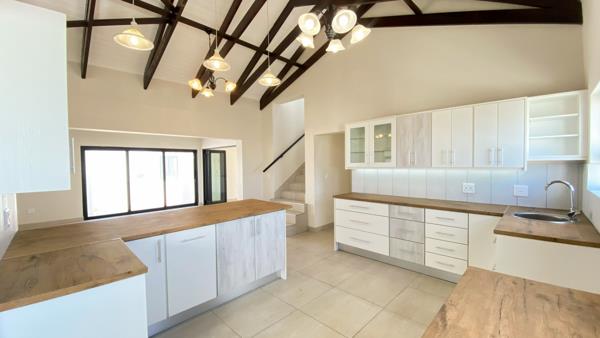 Nestled in a secure, manned estate near Laaiplek, this stunning home features a spacious living and dining area that seamlessly connects to an open-plan kitchen, perfect for entertaining family and friends.