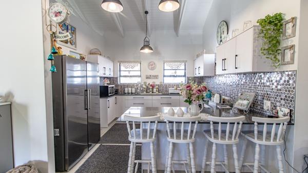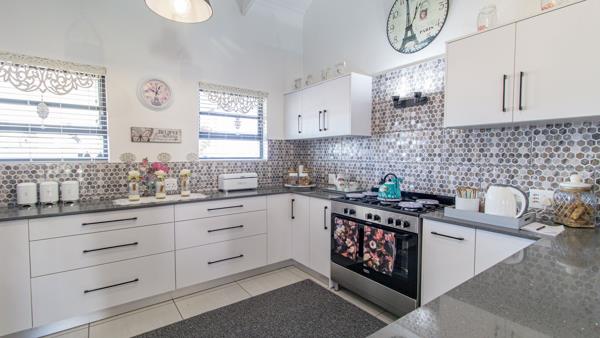 The open-plan layout works well. You cook on a five-burner gas stove, and the engineered stone countertops and scullery keep things practical and tidy. Whether you''re entertaining indoors in the braai room or outside under the pergola, theres always space to relax.