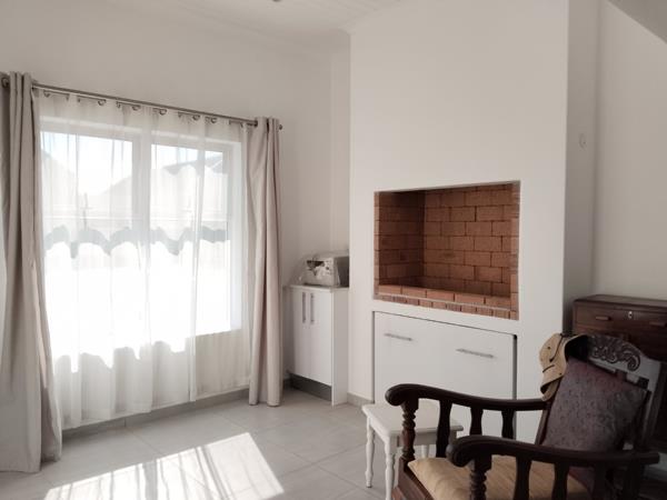 - Indoor braai room with sliding doors to the front garden, built-in braai and wood drawer all unused!