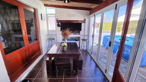 Enjoy year-round relaxation in the indoor braai area, seamlessly extending to a private patio, ideal for a morning coffee or sunset drinks. Whether hosting friends or simply enjoying the fresh coastal air, this space is built for comfort and connection.