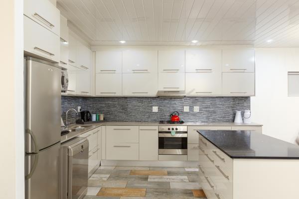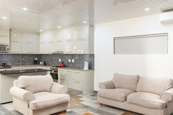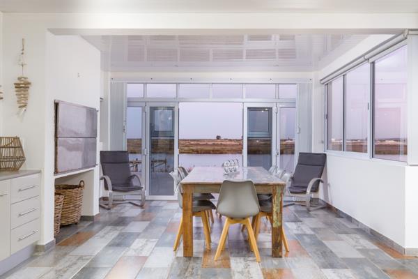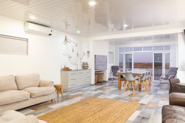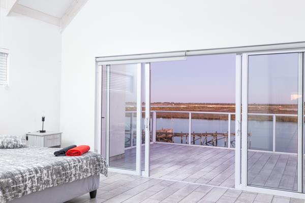 You are welcomed by a spacious open plan living area with a modern kitchen. The living area features an indoor braai and a stacker door with breathtaking views of the river.Imagine sitting by the fire, watching the birds fly by - Velddrif is known for its rich variety of bird species.