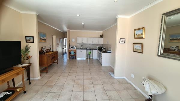Discover comfortable living in this modern 2-bedroom, 2-bathroom residence located within a secure gated community in Velddrif. The interior boasts an inviting open-plan layout, seamlessly connecting the lounge, dining area, and a well-appointed kitchen. Featuring neutral walls, easy-to-maintain tiled flooring throughout, and crown molding, the living space offers a versatile canvas for personal style. The functional kitchen is equipped with ample light-colored cabinetry, dark countertops, and modern appliances, perfect for everyday convenience.