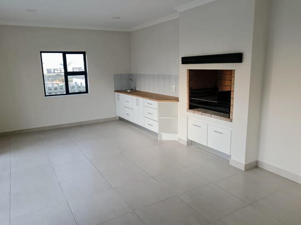 The Kitchen is open-planned with high-end appliances and ample storage leading to living and indoor braai area downstairs.