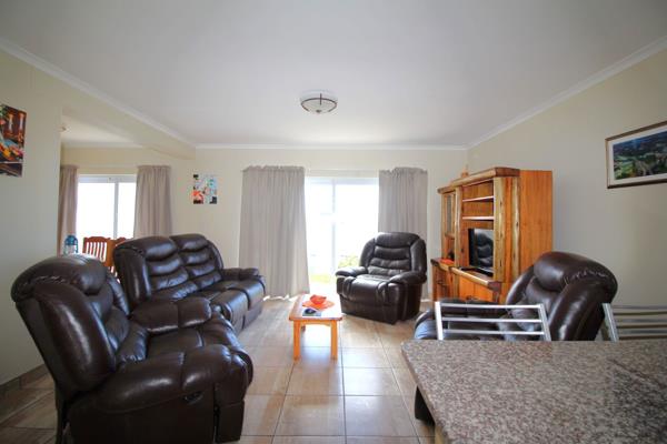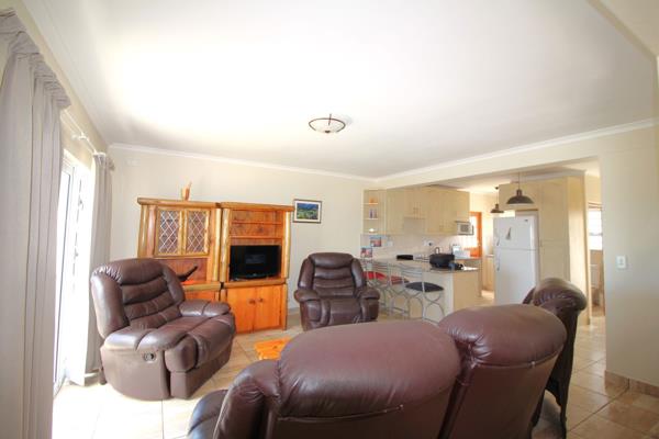 Step inside to find a modern kitchen with a small scullery, perfect for preparing meals with ease. The open plan lounge features an indoor braai, ideal for cozy nights in or entertaining guests. Sliding doors lead you outside, where you can enjoy the fresh sea breeze.