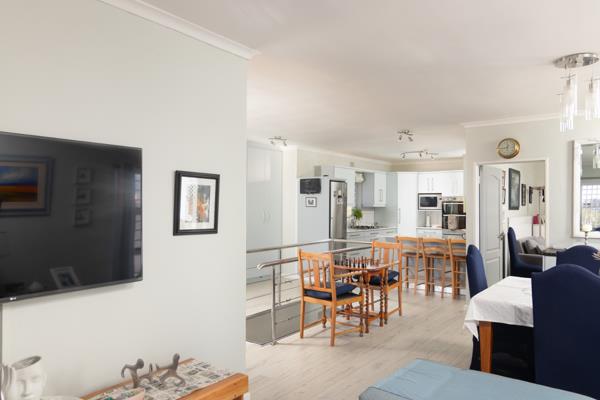 Downstairs: Enjoy an open-plan kitchenette and lounge area, designed for modern living and seamless entertaining. The indoor braai adds a cozy touch, ideal for family gatherings and social events.. The lounge opens up onto a patio, creating a harmonious indoor- outdoor flow. From the patio take a short walk downstairs to discover a hidden , wind-free braai corner, perfect for outdoor dining.