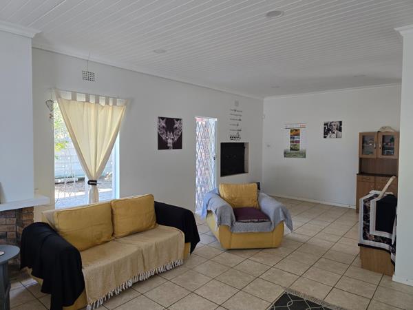 Open-plan living and dining area with built-in braai ideal for entertaining