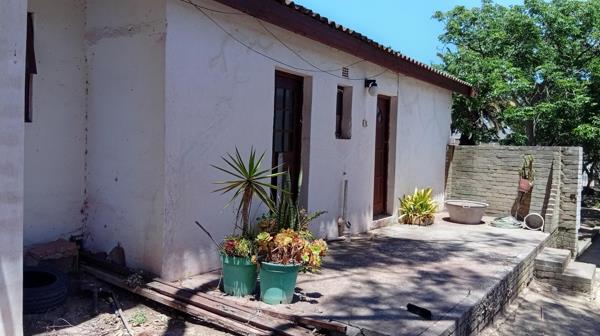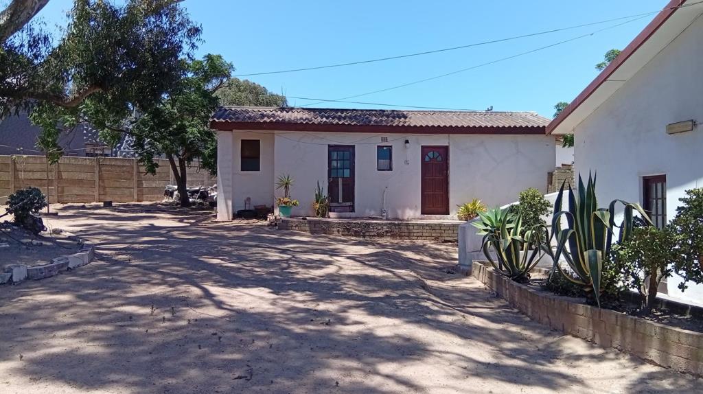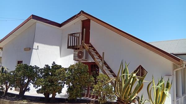 Kitchen has lots of cupboards. A small enclosed backyard with a built braai.