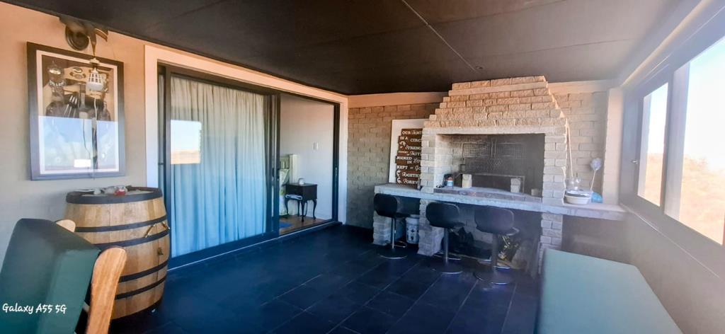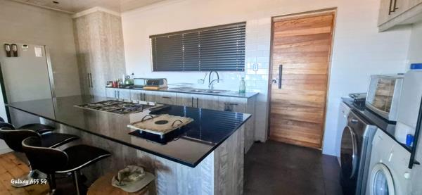 The spacious open-plan living area boasts elegant wooden floors and sliding doors that open seamlessly onto a stunning entertainment area of approximately 50m². Here, you can enjoy early-morning birdwatching and unforgettable sunset evenings, all while taking in uninterrupted, un-spoilt views that can never be blockedensuring complete privacy and peace of mind. The entertainment area also includes a built-in braai, ideal for relaxed coastal living.