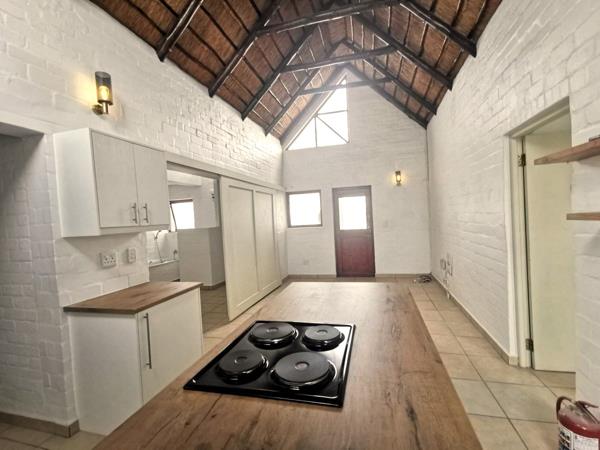 Well designed kitchen with build in electric oven and 4 plate stove.