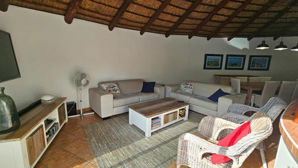 This spacious townhouse in the quiet coastal town of Dwarskersbos, is in a security development close to the beach. Perfect weekend getaway family holiday home, rental unit for extra income, or retirement home. Close to the local superette and restaurants.The complex is beautifully maintained, and offers a communal pool and recreational hall.The area is known for its friendly residents, long beaches, breathtaking sunsets over the ocean, paddling, mountain biking, 4X4 trails, fishing, bird watching, the Berg River canoe marathon, etc. In flower season,the area is covered in a variety of colorful veld flowers.This is a place for restoration. Peace and quiet.Call us to arrange an appointment to view.Ample built-in cupboardsOpen plan design perfect for entertainingSpacious kitchen with ample BICsExtended kitchen with built-in braaifireplaceWood-burning fireplaceUndercover braai area with built-in braaiTwo bedrooms downstairs with a full bathroom, separate toilet.Beautiful wooden staircase leading to loftLoft converted to accommodate the main bedroom with full en-suite bathroom, opening onto the covered deck