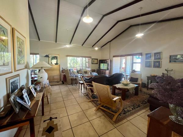 Step inside from the welcoming stoep into a spacious open-plan lounge and dining area, enhanced by high ceilings and exposed beams. This inviting space flows onto a generous deck with built-in braai and outdoor seating and mdashperfect for relaxed gatherings.