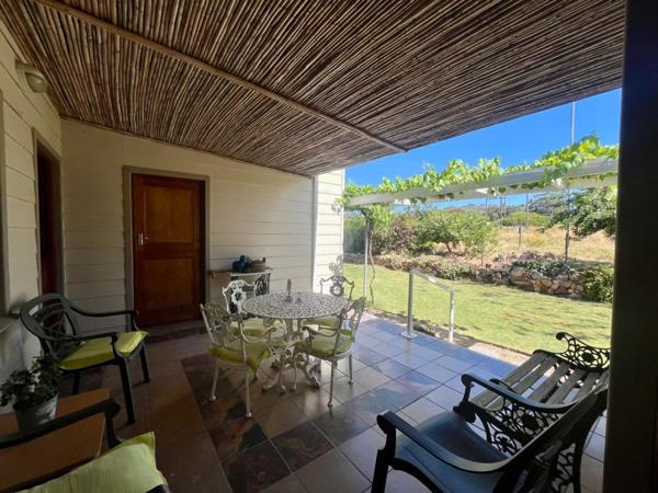 Enjoy three separate patios, landscaped gardens, a well-maintained lawn, and panoramic farmland and mountain views and mdashan unbeatable backdrop for Sandveld sunsets.