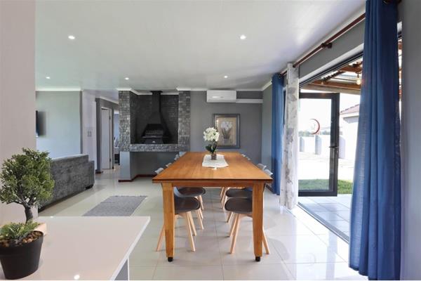 OUTDOOR FEATURES: Expansive covered deck with corrugated roofing and countryside views. Built-in tiled outdoor braai area, perfect for weekend get-togethers. Fully enclosed garden with lawn pet and child friendly. Neatly landscaped with low-maintenance design. Small basketball court at the side of the property. Mini basketball court to be installed by the owners (current image is AI-generated for illustrative purposes only and may not reflect the final design).