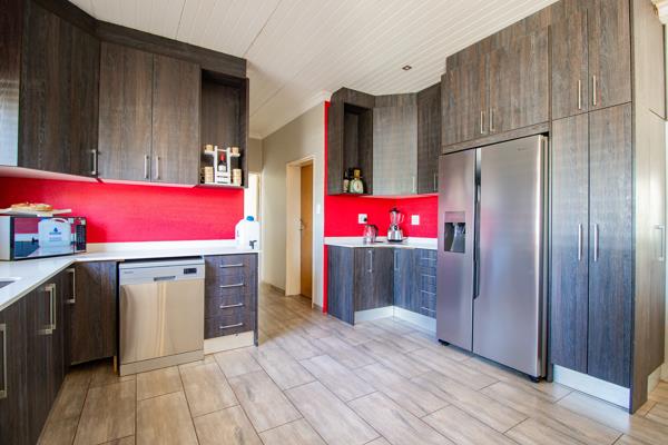 As you step inside, you''re greeted by a grand open plan layout encompassing the kitchen, lounge, dining room, and an indoor built-in braai area the perfect setting for both family gatherings and entertaining friends. The beautiful kitchen is a chef''s dream with ample built-in cupboards, a scullery, gas stove, and electric oven. The 4 generously sized bedrooms, all equipped with built-in cupboards, provide ample space for family and guests. The main bedroom takes luxury a step further with a beautiful walk-in cupboard and an en-suite bathroom. Additional practical features include a linen cupboard, a family bathroom, and a guest toilet. Work or study effortlessly in the dedicated office space, and enjoy the convenience of prepaid electricity.