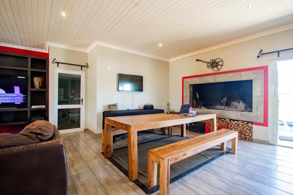 Step outside to discover an oasis of relaxation an undercover pool with a built-in outside braai area (70m2) beckons for endless enjoyment. The stunning garden, adorned with fruit trees including grapes, apples, plum, olive, mango, pomegranate, and lime, adds a touch of natural beauty. The property also boasts two garages and a massive driveway, providing ample parking spaces.