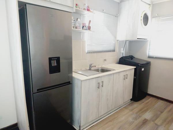 The heart of the home is the open-plan kitchen and lounge area, designed for seamless living and entertaining. The kitchen boasts modern granite countertops, an electric stove with an under-counter oven, an extractor fan, and a washing machine connection. Upgraded within a couple years, it provides a fresh and contemporary cooking space. The complex is equipped with Fibre connection. The complex is fully walled with a walk-in gate entrance and an automated sliding gate.
