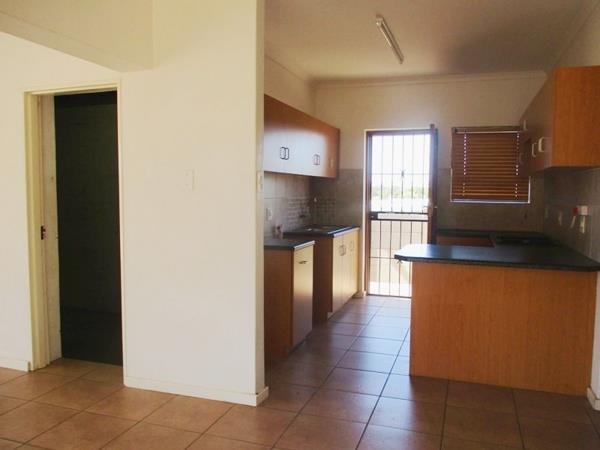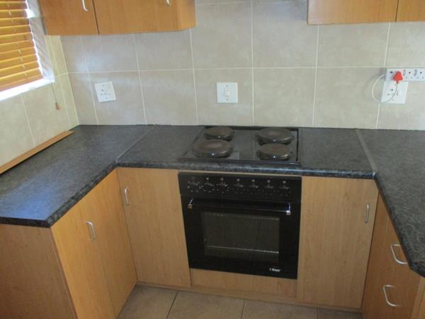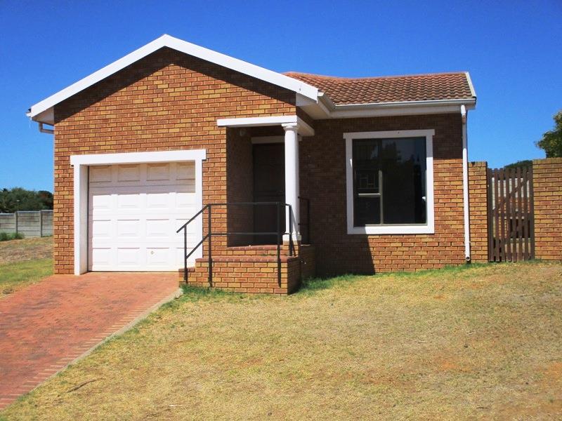 This 2-bedroom, free-standing house is in a gated complex with a remote- controlled access gate. The view of the nearby mountains and wheatfields is amazing. There are only a few houses in the complex and managed strictly by the rules of the H.O.A. Monthly levy is an affordable R125. This property is well-maintained, and the new owner can just add his own personal touch to the decor. The 2 bedrooms are carpeted and may probably been replaced, should you prefer so. The main bedroom has an ensuite with shower, hand basin and toilet. The second bathroom has a bath and shower, hand basin and toilet. The open plan living area is reasonably spacious to fit a lounge, dining and kitchen area. The kitchen is plumbed for a dishwasher and washing machine. There is a hob and undercounter oven, with an extractor fan. There is direct access to the single garage with its automated door. All windows are burglar barred, and all doors have safety gates, as well as the sliding door that exits to the paved braai area and garden. There are blinds at all windows.