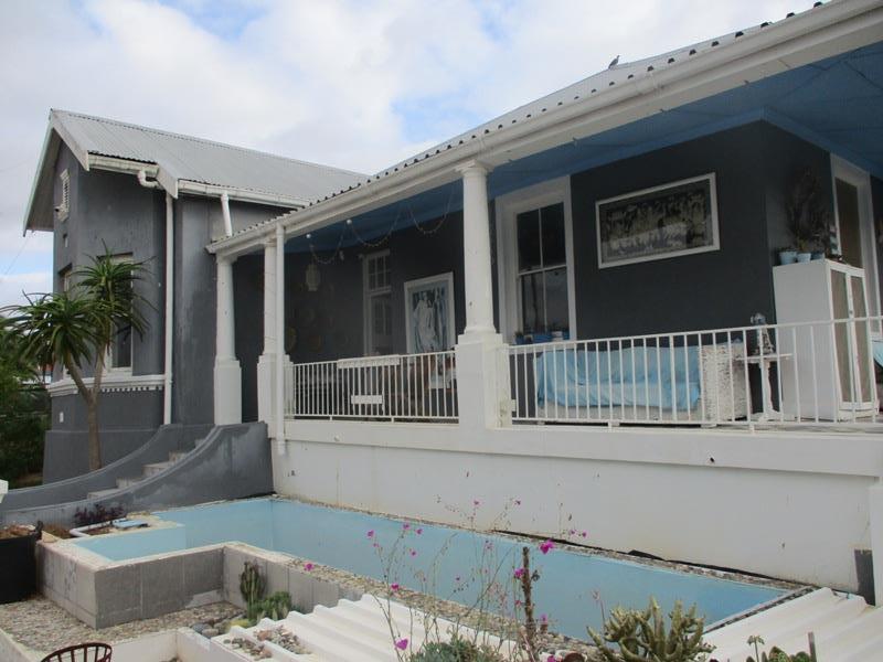 This Victorian Queen is only 1 hour''s drive from Cape Town. Just off the N7-route to Namibia, you will find Moorreesburg, also known as the Breadbasket of the Swartland. The 1933m corner stand is fully enclosed and the house can be seen as a landmark with its elevated wrap-around stoep, that offers stunning views of the surrounding landscape. Here you can enjoy sundowners after a hard day''s work, or cool down in the splash pool, This property can be subdivided in smaller erven. From the stoep, You enter into a wide hallway with a stunning high pressed-ceiling and gleaming wooden floor, as the lounge, dining- and main bedroom also have. All the rooms are very spacious and can be shuffled around, according to your needs. The rooms can even be divided, should you want it smaller. The house has been refurbished to enhance its original charm, yet offers a modern lifestyle.The pressed ceilings, wooden floors and bay windows, add to the old-world charm. The current lounge/dining room is double-seized and the bay window adds glamour. Some sash-windows have shutters. Except for this very large living room, 2 bathrooms, a kitchen and scullery/laundry, there are 4 more rooms. The main bedroom is super large and has a fireplace-look feature and a walk-in closet. This space is cleverly equipped with modern shelving that is free-standing and can be removed. The door between the closet and kitchen has currently been sealed and once it is re-opened again, it can again be utilized as a study or breakfast room. The main bathroom has been totally revamped and boasts with quality fittings and accessories. Another door in the bathroom is also sealed, but once opened again, it has direct access into another room, now been utilized as a study. From the passage is another room with en-suite bathroom ( bath, toilet and hand basin) and boasts Greek-inspired tiles. This room has an electric heater, but decorated as a look-alike cast iron hearth, with mosaic tiles. This adds character and is a real work of art! This room also has an outdoor, that flows into a courtyard and is also accessible from the covered carport.