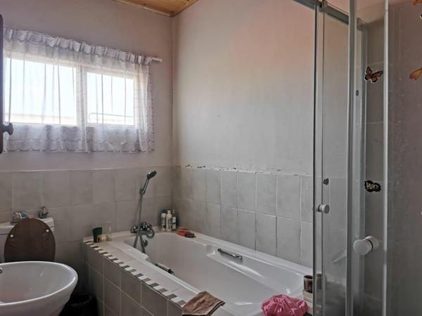 Fairly new +/- 200 sq. meter Home with 3 bedrooms , 1 En Suite Bathroom to the Master Bedroom as well as a full guest bathroom. Open Plan kitchen / family room with build-in cupboards and tiled floors . Bachelor flat with kitchenette , bathroom with toilet , basin and shower that makes the 4th separate bedroom.