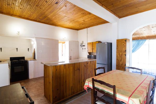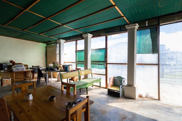 The property is self-sufficient, boasting a borehole with fresh water, multiple water tanks, and a large double garage with an adjoining laundry room for added practicality. A charming chicken coop adds a touch of rural charm, while the expansive grounds provide plenty of space for gardening or outdoor activities.