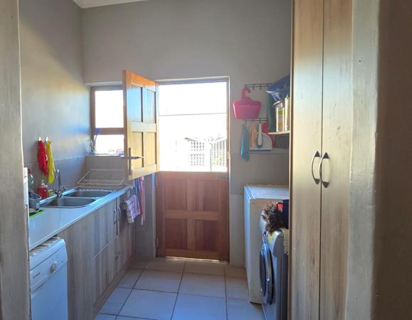 Open Plan Living: Light-filled lounge, dining area, and modern kitchen with a separate scullery/laundry room fitted with appliance connections.