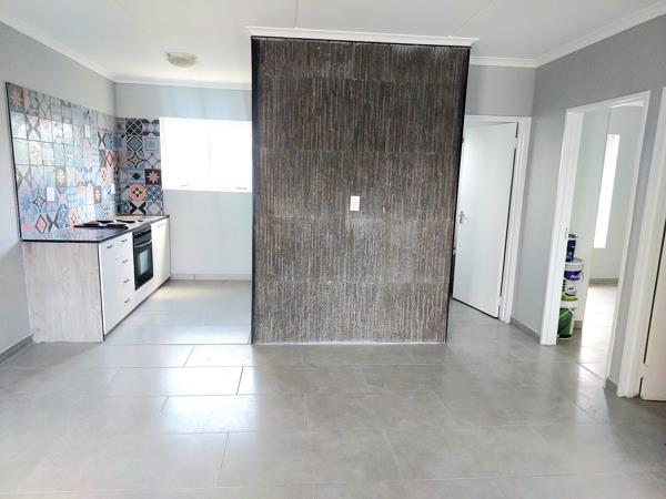 Don''t miss out on this new listing! 2 Good size bedrooms with windows and a bathroom with the shower in the bath. The kitchen is a nice size and has a window. There is a water point for a washing machine. The lounge is very spacious and has a feature wall.