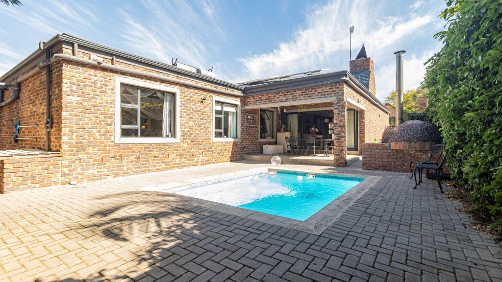 This home is designed for entertainment - a lovely garden with heated swimming pool, a jungle gym and kiddies play area, a covered patio and a braai area, featuring a pizza oven and a wood fired smoker.