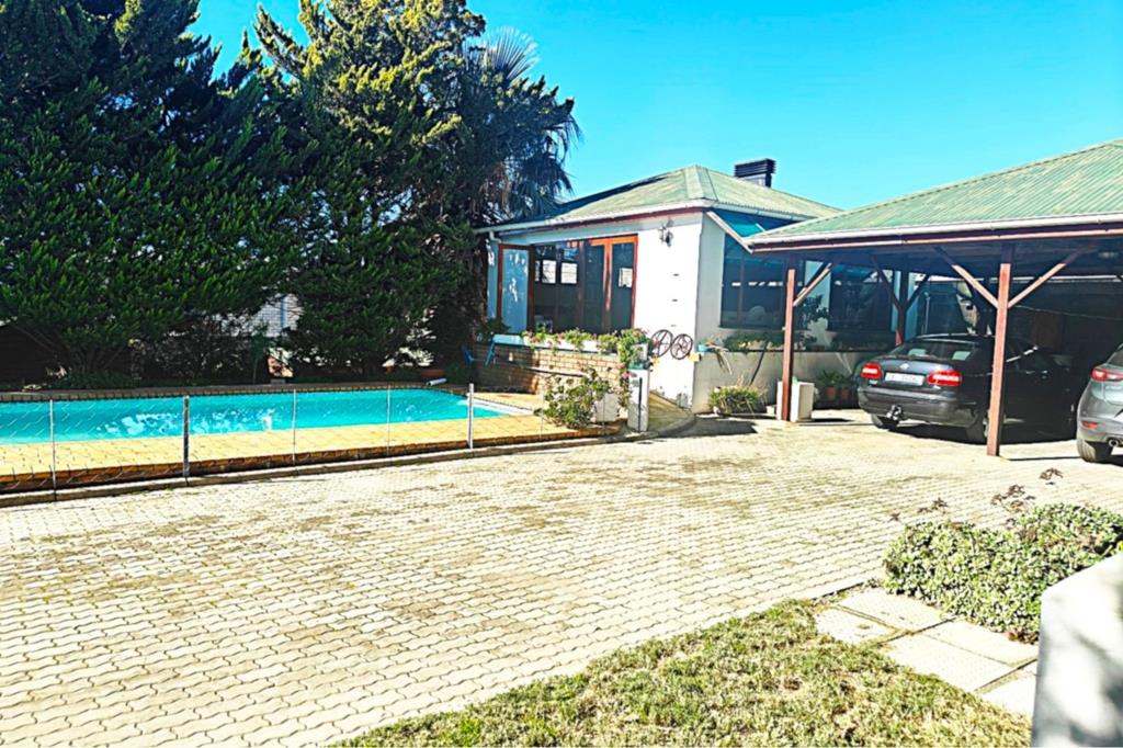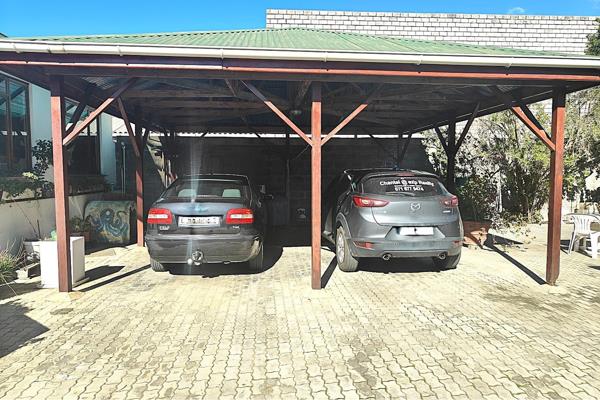 Additional features include double garages, a double carport, ample visitor parking behind an automated access gate, and two Wendy houses for storage. A chicken coop, vegetable garden, almond and lemon trees, and a manual irrigation system enhance the outdoor offering. The property is fully walled, secured with burglar bars and gates, and includes a separate back courtyard and external laundry room with shelving and cupboards. Air conditioning and ceiling fans with pre-paid power.