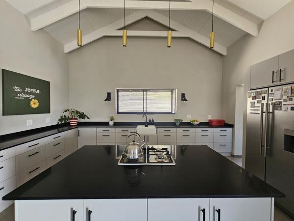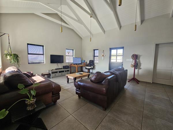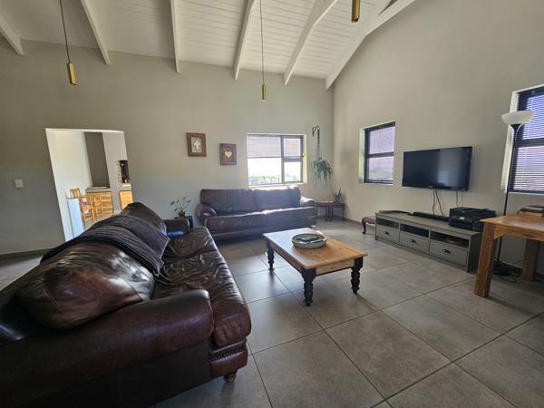 When walking into the house, you are met with space and light. High roof trusses and a wonderful open plan kitchen and living area makes for a light and homey feel. The indoor braai area leads onto the patio which provides a stunning view of Piketberg and the farm lands. From the patio you take the steps down to the garden and separate flatlet entrance.