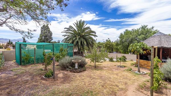 Outdoor living is a standout, with two welcoming stoeps, a dedicated braai room with a built-in braai, and a lapa for effortless entertaining. A single garage provides secure parking, while the wine cellar offers excellent storage for collectors. Garden enthusiasts will appreciate the greenhouse filled with vegetables, two JoJo tanks for water storage, and a variety of fruit trees including paw-paw, naartjie, lemon, lime, almond, apricot, and five grape vines.