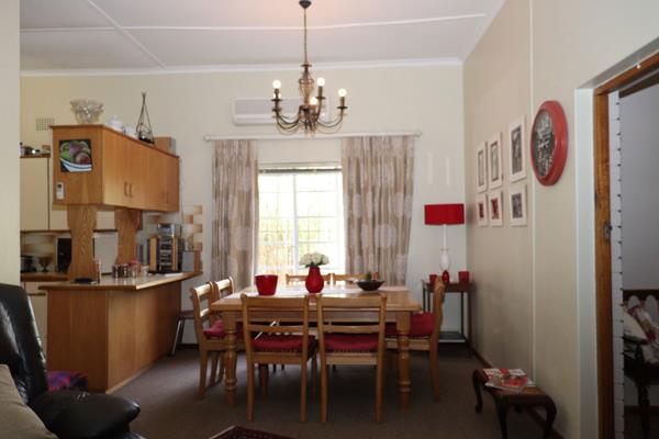 Beautiful 3-bedroom house with beautiful garden and spacious outbuildings.. The well-maintained spacious house has a separate lounge, an open plan kitchendining roomliving room, 3 bedrooms, 2 bathrooms and a study. The bedrooms all have built-in wardrobes, and the master bedroom has an air conditioner. There is one full bathroom while the second bathroom only has a shower. The hallway has a linen closet. The kitchen has many built-in cupboards with an eye-level oven and hob with an extractor as well as a scullery that runs from it. The house has a double garage with automatic doors and an apartment bedroom and bathroom with shower adjacent to it. The beautiful rear garden is ideal for visiting and gives access to a separate laundry room and work room. The house is secured with burglar bars and security gates. Wonderful house for a family.