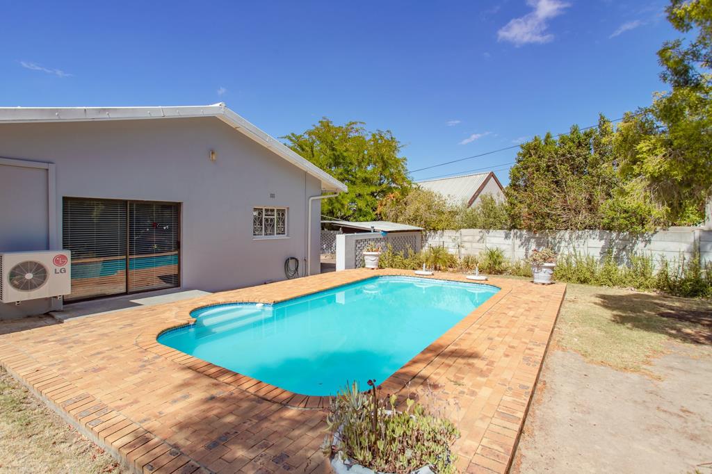 The house has a separate lounge, a living room with air conditioner and guest toilet, a large kitchen, a separate dining room with air conditioner, 4 spacious bedrooms with built -in cupboards and two full bathrooms. The master bedroom has an en-suite bathroom and an air conditioner. The living room runs out on a beautiful private pool in the backyard.