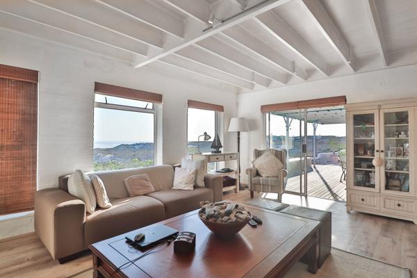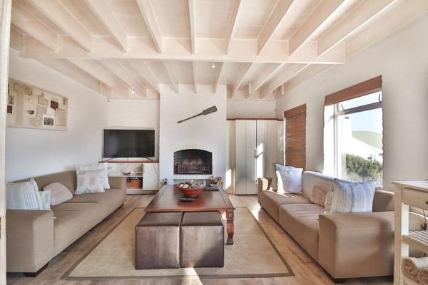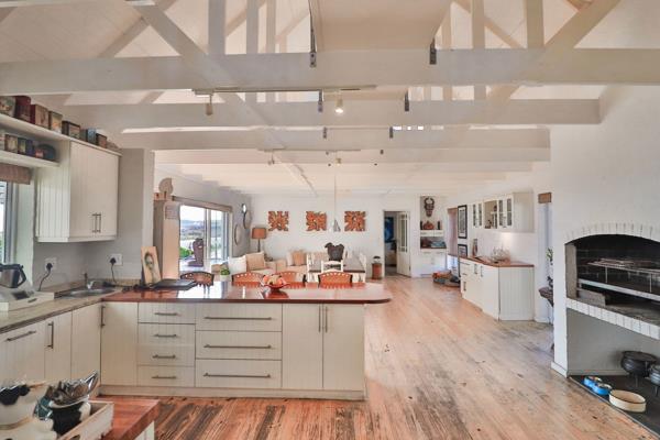Open plan living with exposed trusses ensuring plenty of natural light is distributed through the living areas and kitchen . These living areas open onto the wide sea front deck and the sheltered front garden with covered patio and splash pool . All lending to sunny outdoor living and summer entertaining.