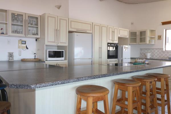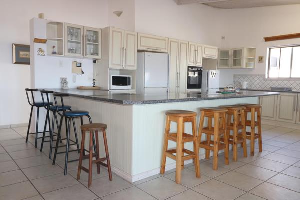 Team Merle Nicholls based in Yzerfontein, selling the lifestyle I live. Nestled in the heart of the old part of Yzerfontein, this family home offers breathtaking sea views and is just a short drive from the beach, shops and essential amenities. Situated on a generous 868m2 stand, the house itself is 600m2 including the two verandas and is the perfect property for those seeking both comfort and coastal charm. The property features a main dwelling along with a separate two bedroom flat. The main living area upstairs welcomes you with a spacious entrance hall, leading into an open plan lounge and dining area with a built in braai, seamlessly connected to a well designed kitchen. The kitchen features a wrap around countertop, an eye level oven and a separate laundry for added convenience. From the living area, sliding doors open onto a sunny enclosed veranda, extending to an open veranda with a built in braai, ideal for entertaining while soaking in the ocean views.
