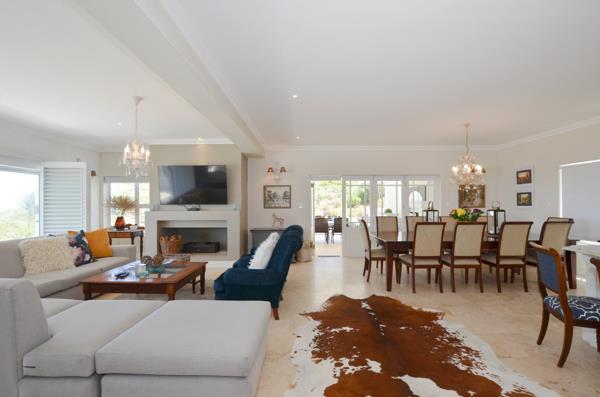 Outdoor living is a key feature of this home, with two built-in braai areas, expansive terraces, and uninterrupted views over natural fynbos. Practical additions include a double garage, extra parking for up to four vehicles, and a large storage room almost the size of a third garage.