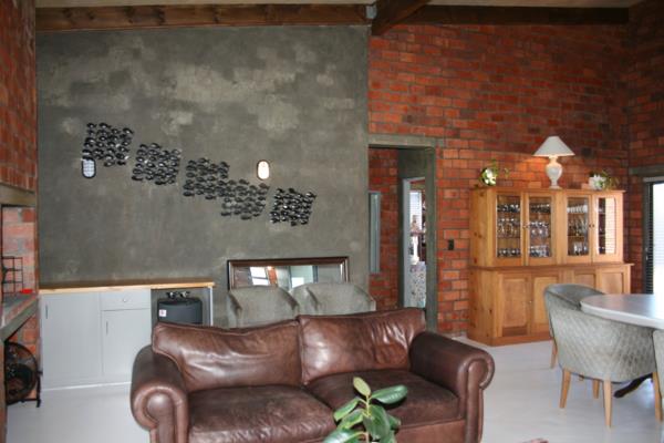 Inside, discover a masterclass in thoughtful design. High ceilings with open trusses create a sense of grandeur, flooding the open-plan living area with light. Imagine cosying up by the lounges fireplace with a glass of local wine on a crisp winter evening, while the well-appointed kitchen and separate scullery make hosting a joy. The homes intelligent layout offers a private master en-suite retreat on one wing, with two guest bedrooms and a full bathroom on the other, ensuring harmony and privacy for all.