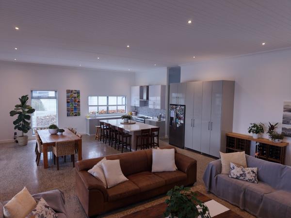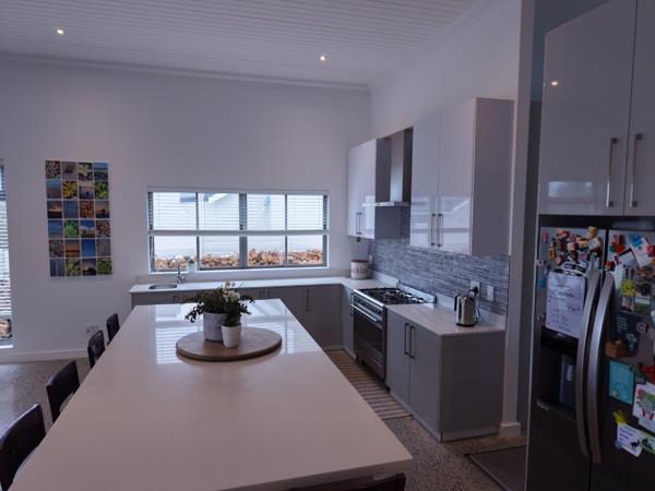 The open-plan living area and modern kitchen, complete with a large island, create the perfect space for entertaining family and friends. The private, sheltered patio features a built-in braai and pizza oven, ideal for relaxed West Coast living. Open the sliding doors and experience a seamless indoor-outdoor flow that embraces the natural surroundings.