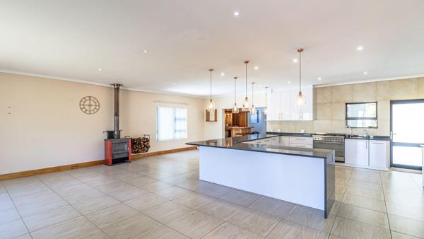 The layout has been thoughtfully designed to accommodate modern family living, entertaining, and working from home. The main living areas are open and well-proportioned, allowing the lounge and dining room to connect naturally with the kitchen. A wood-burning fireplace anchors the living space, creating a warm and inviting atmosphere during the cooler months.